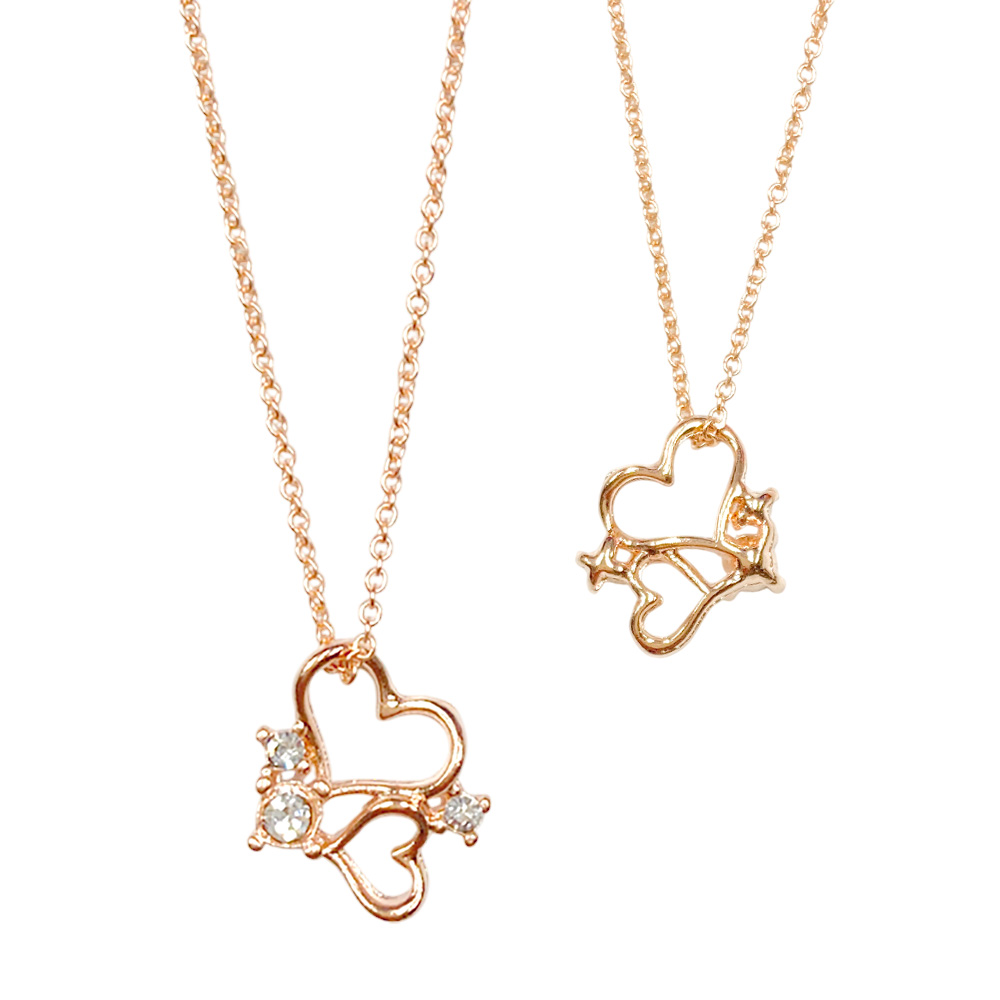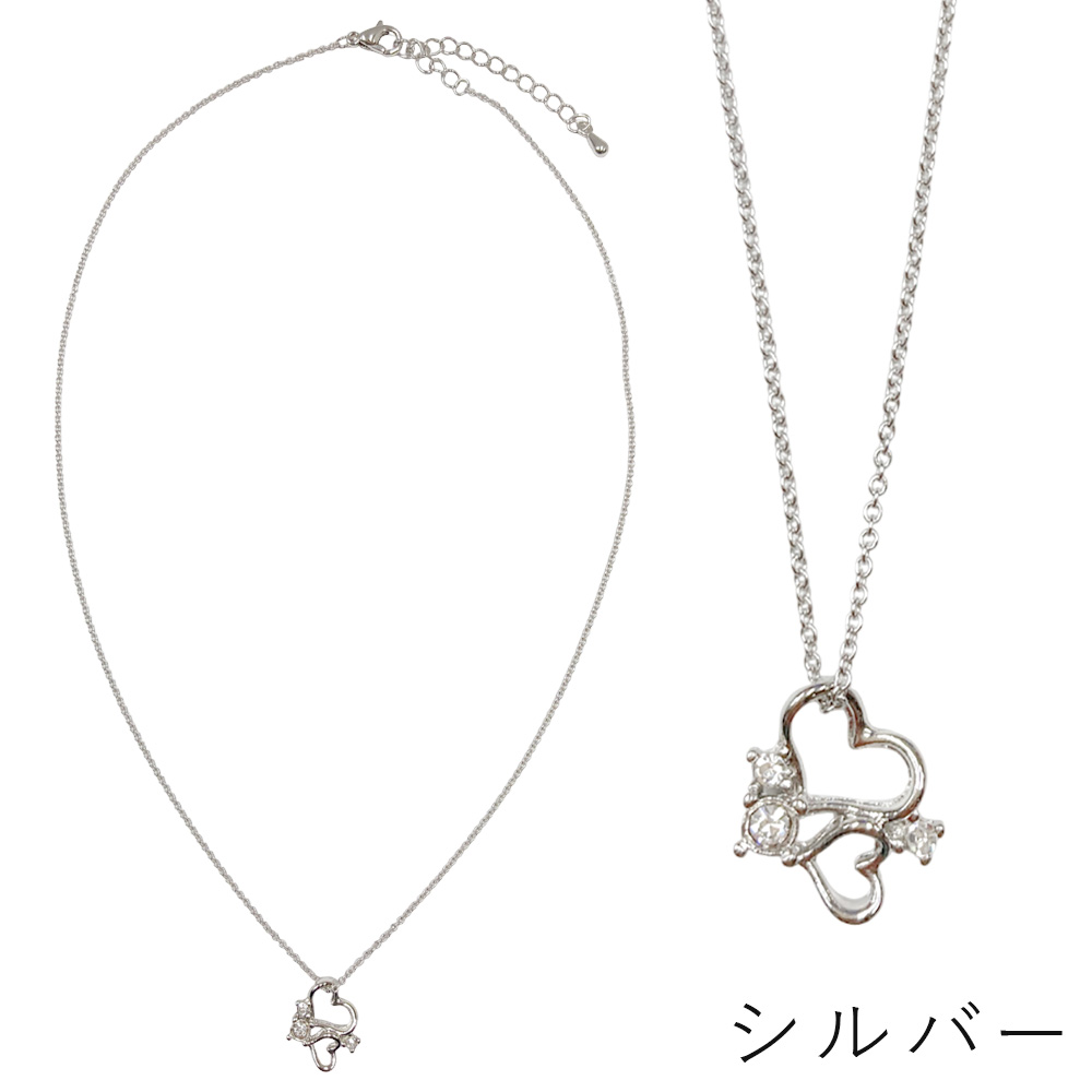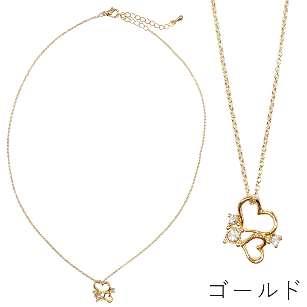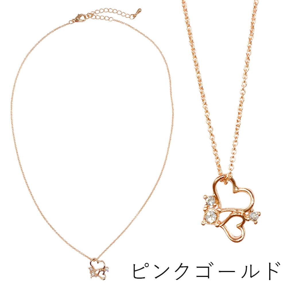 ハート 2個 ストーン ネックレス ペンダント チェーン ハート シンプル 上品 レディース 卸 仕入れ