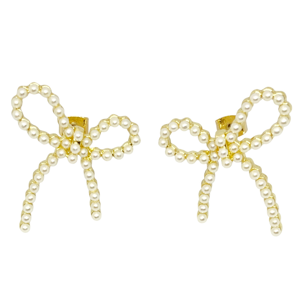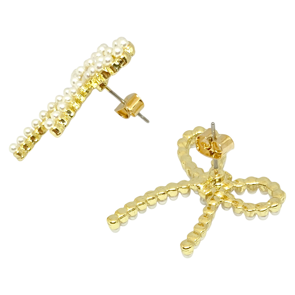 リボン 小粒 パール ピアス スタッド エレガント かわいい 上品 レディース 卸 仕入れ