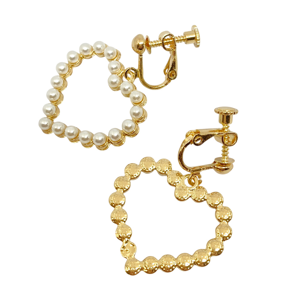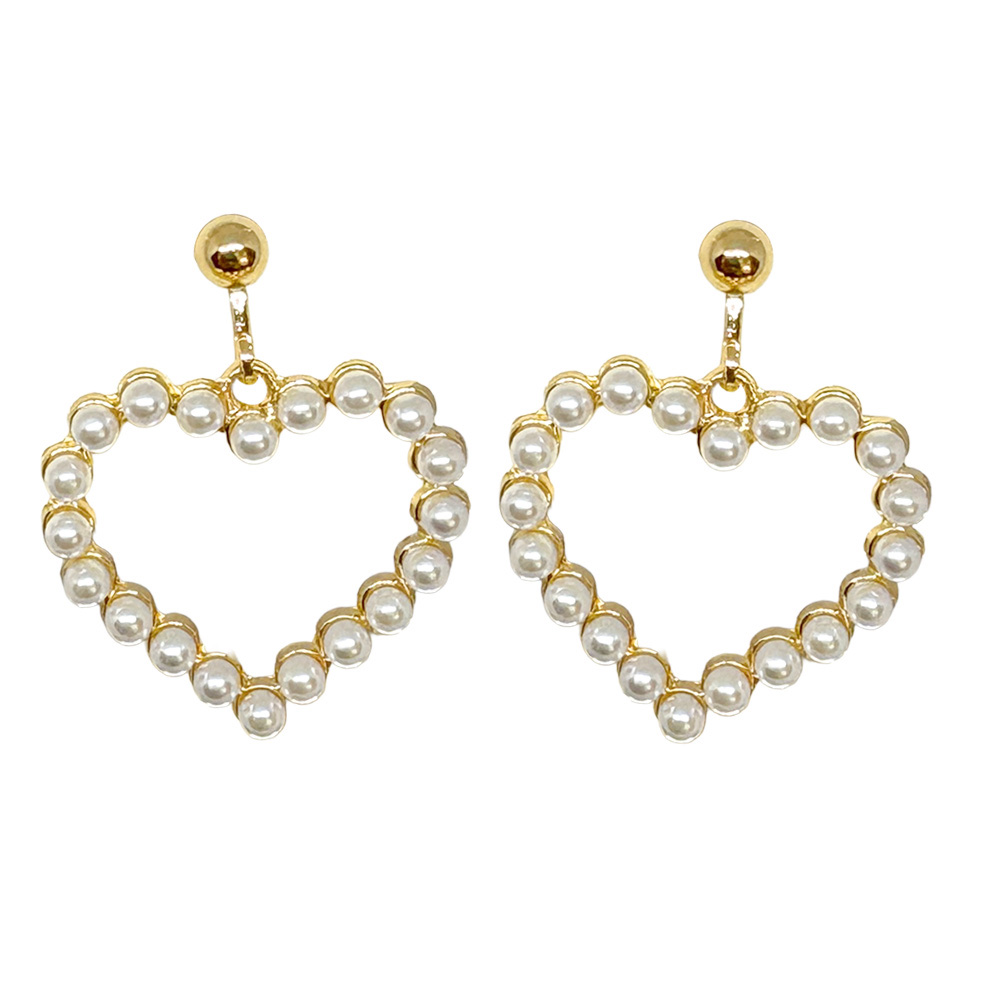パール フレーム ハート イヤリング レディース カジュアル 卸 仕入れ