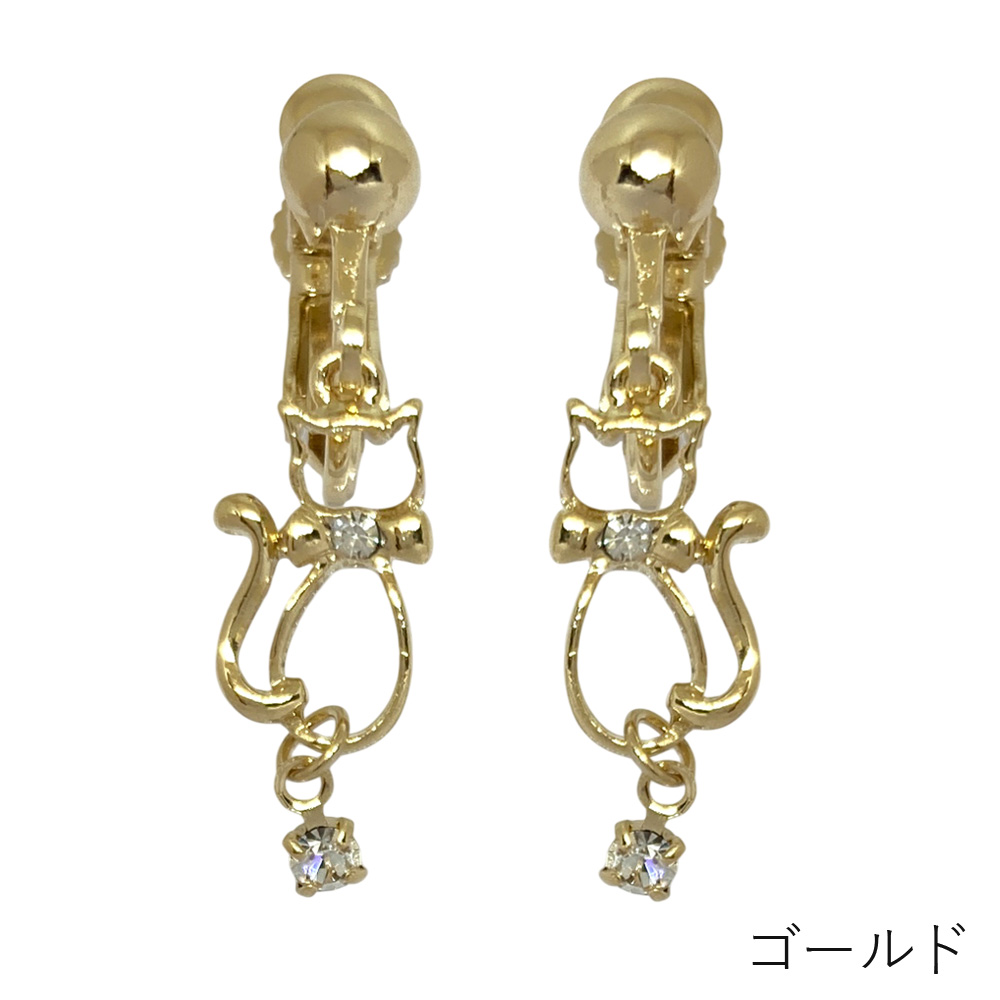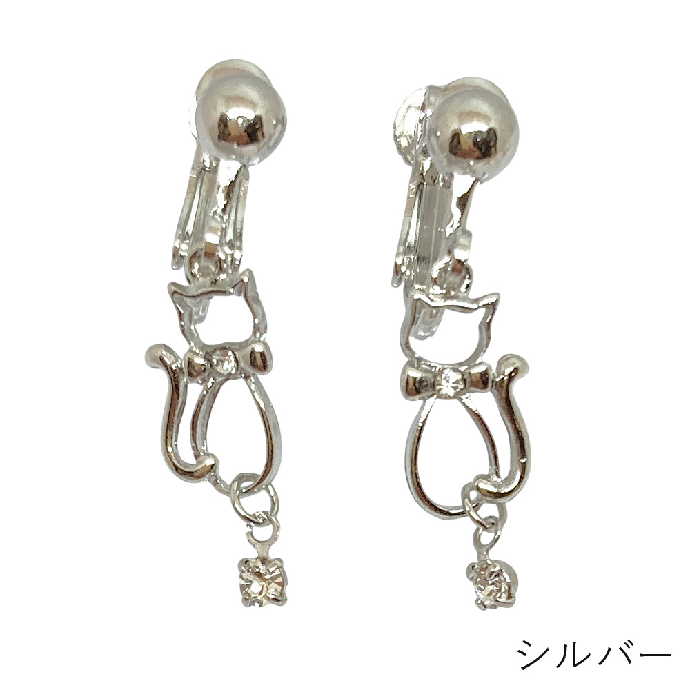 ねこ 一粒ストーン イヤリング 揺れる シンプル ネコ 猫 キャット レディース 大人かわいい