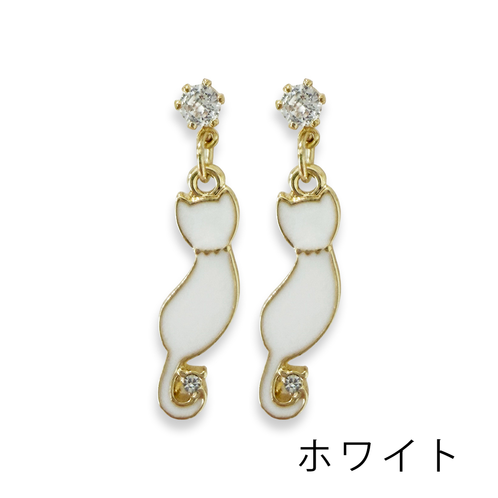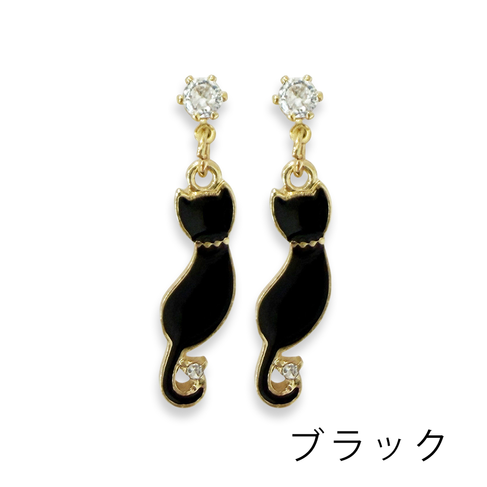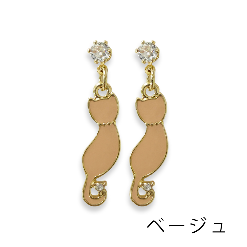 【ステンレスポスト】おすわり ねこ キュービック ピアス ねこ 猫 キャット スタッド レディース 卸 仕入れ