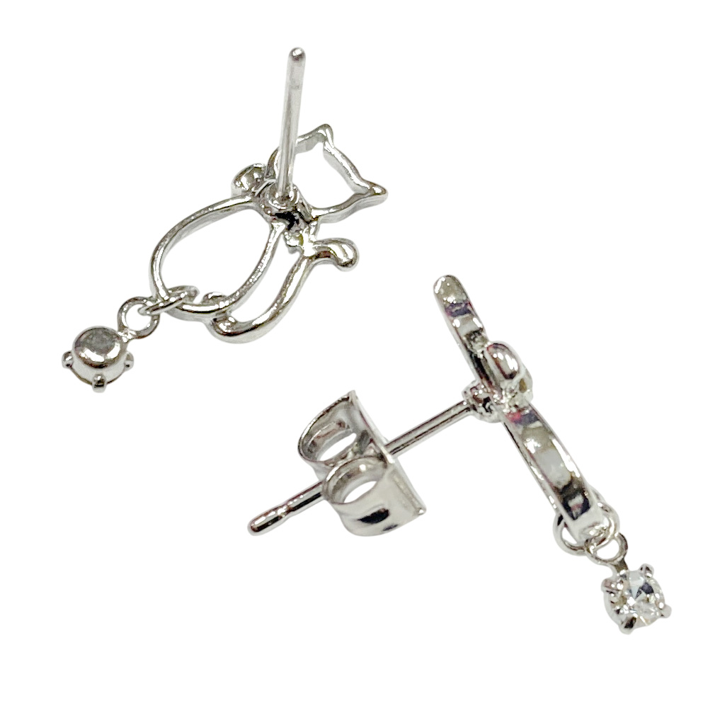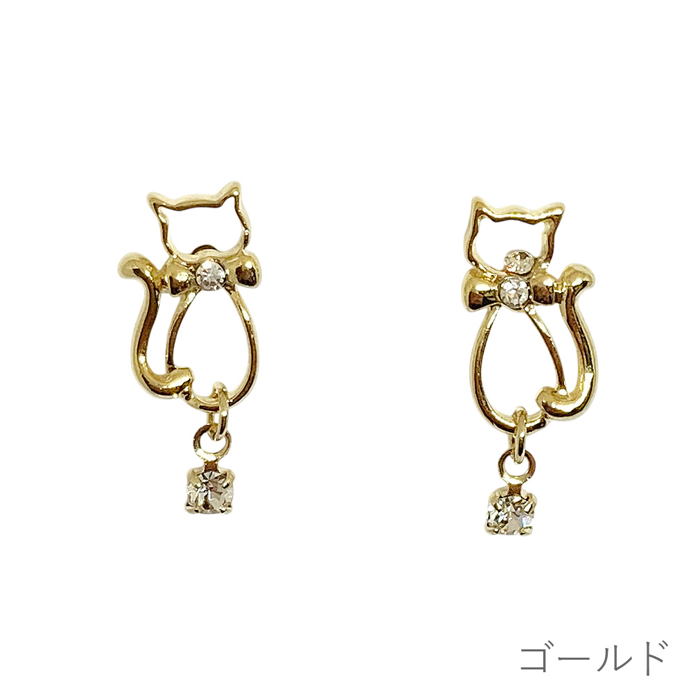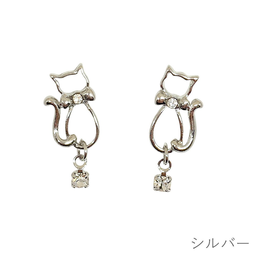 ねこ 一粒ストーン ピアス 揺れる シンプル ネコ 猫 キャット スタッド レディース 大人かわいい