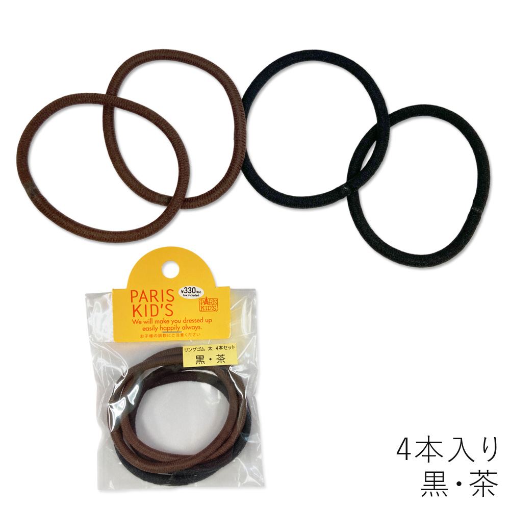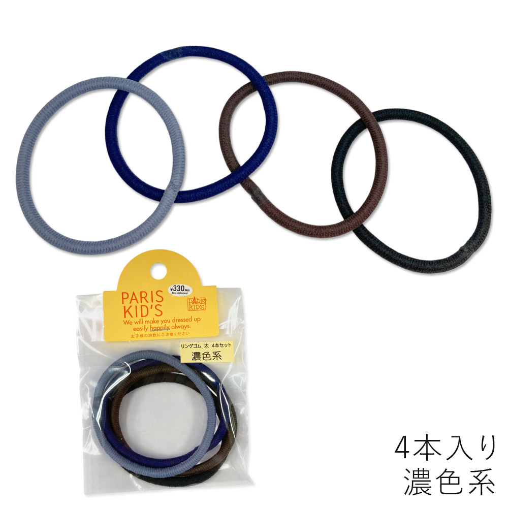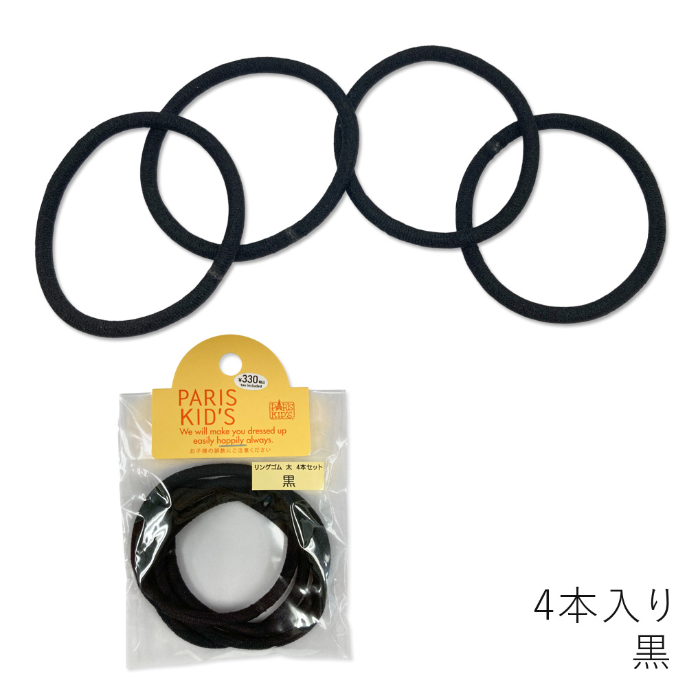 [パリスキッズ]日本製 4本入り リングヘアゴム太 ベーシック ノーマル レディース キッズ 子ども