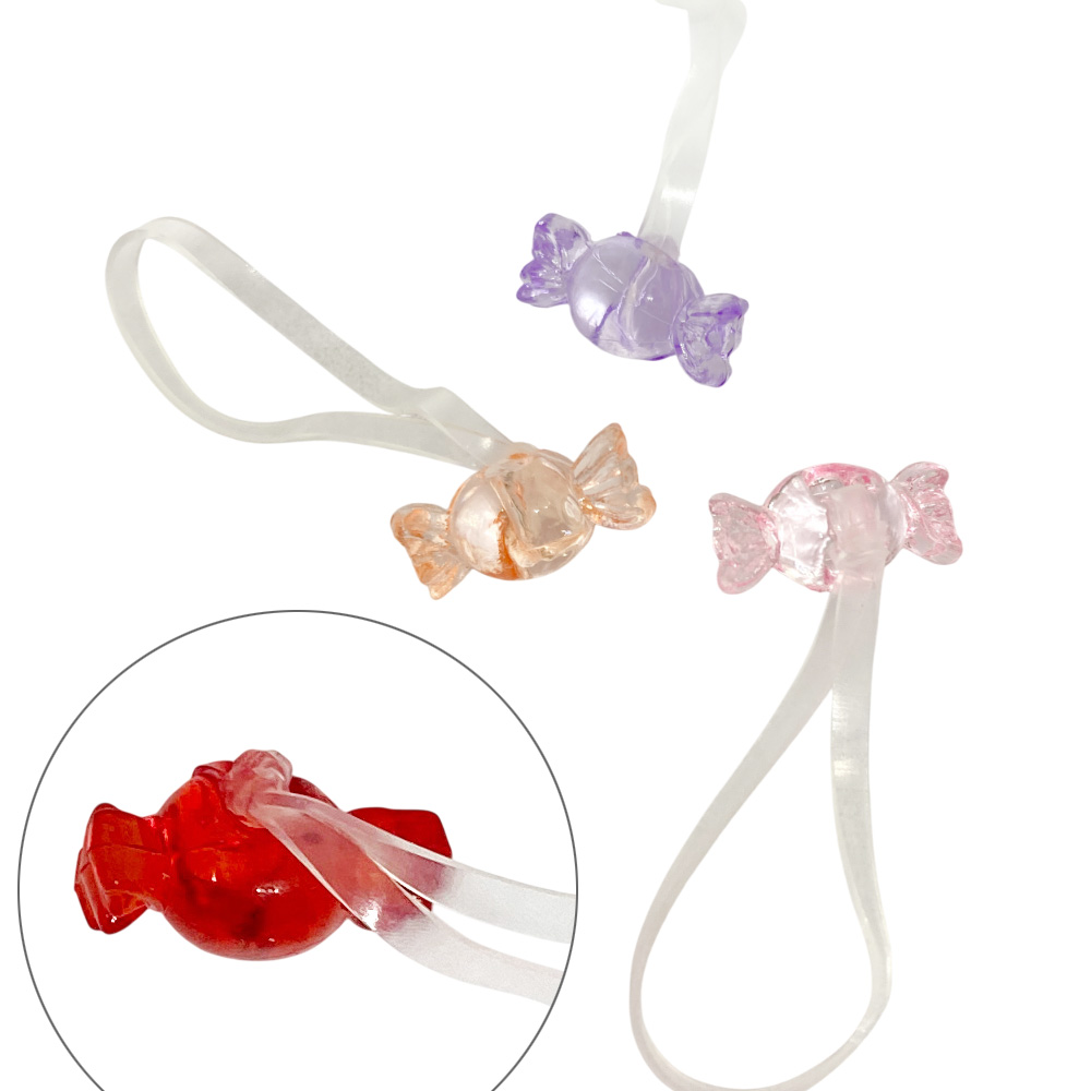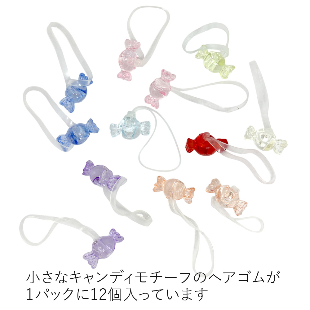 | サイズ | キャンディ:約6mm×約13mm ゴムの幅:約1.5mm |