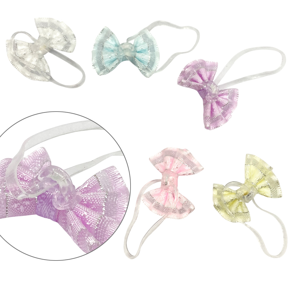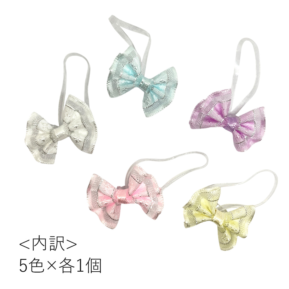 | サイズ | リボン:約20mm×約27mm ゴムの幅:約1.5mm 5色各1個 |