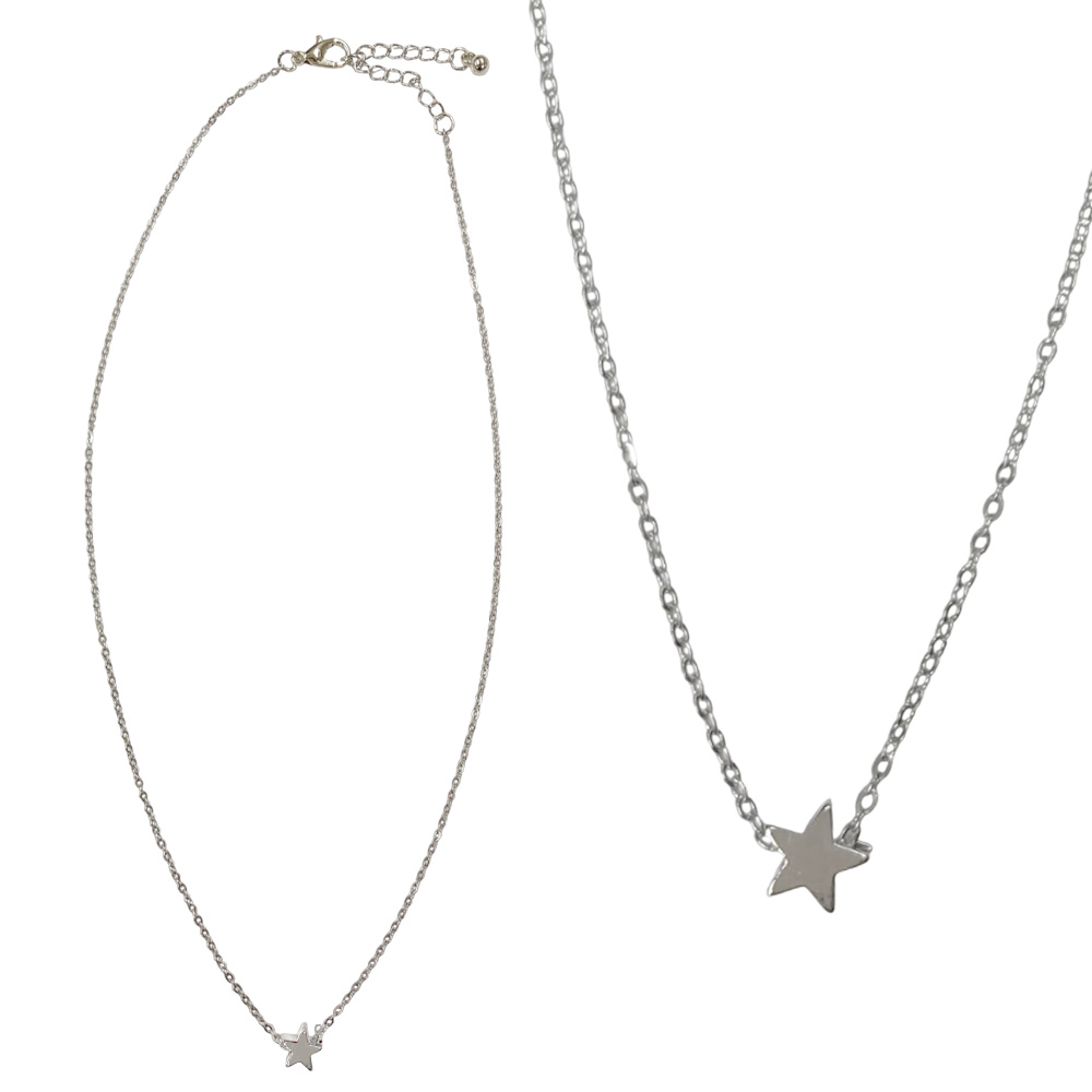 [パリスキッズ]シンプルメタルスター ネックレス ペンダント チェーン シルバー 星 シルバー