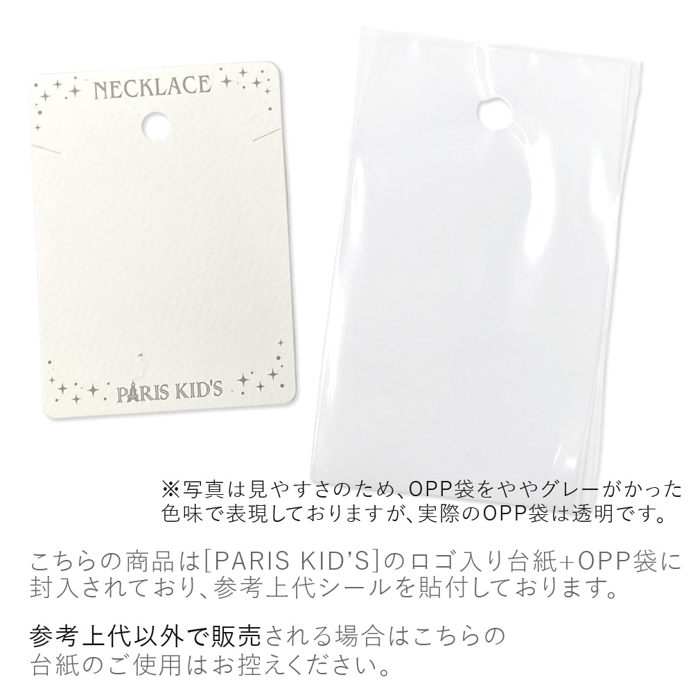| サイズ | チェーンの長さ:約400mm モチーフ全体の大きさ:約16mm×約11mm ストーン・大:約5mm パッケージサイズ:約76mm×約59mm程度 |