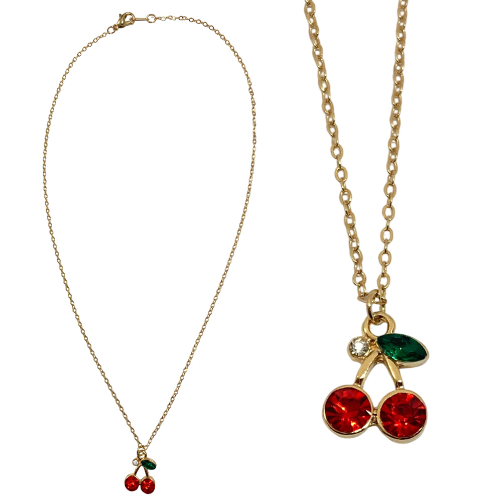 [パリスキッズ]さくらんぼ ビジュー ネックレス ペンダント チェーン サクランボ チェリー
