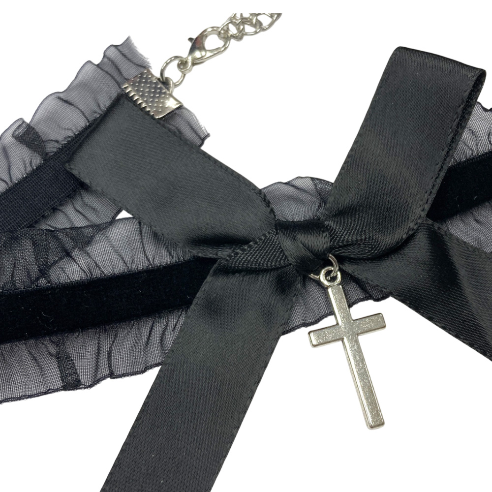 クロス オーガンジーギャザー チョーカー ネックレス